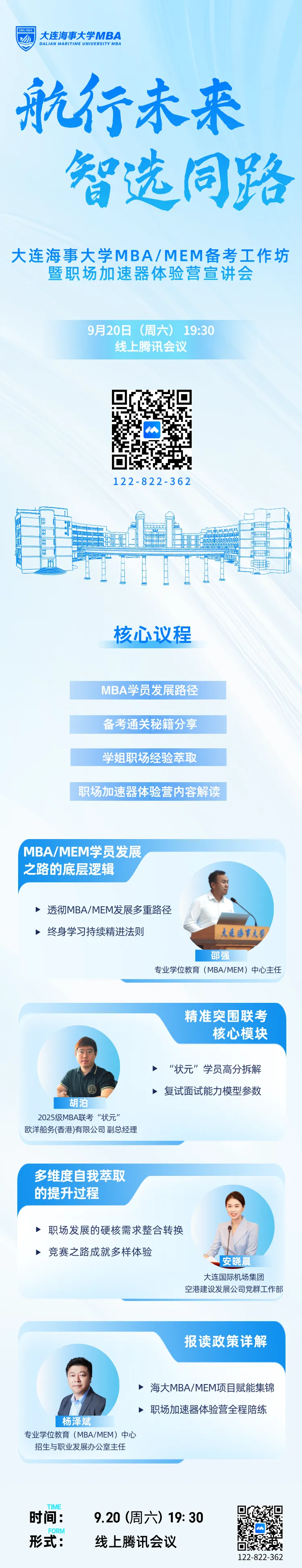 早菁英 || 大连海事大学2026年MBA/MEM备考工作坊暨职场加速器体验营宣讲会