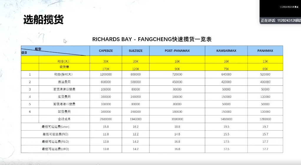 (2)航次成本效益估算与货运方案制订;