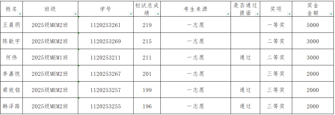 大连海事大学2025级工程管理硕士(MEM)全国管理类联考奖学金名单公示