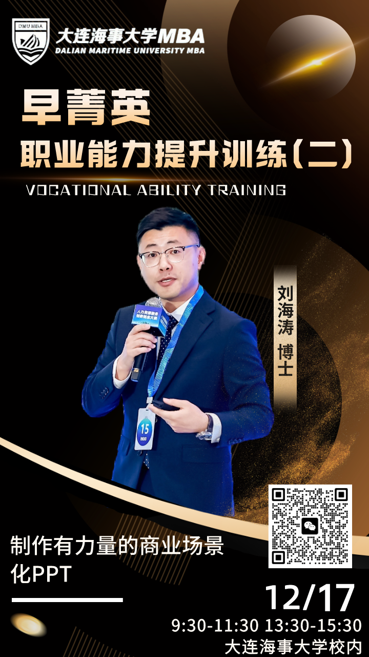 PPT的商业场景化展示是助力职场人士完美呈现项目效果的有力工具。年终岁尾商业大佬的跨年演讲,招投标过程中充满光彩和力量的大屏内容,年会团聚总结的内容大放异彩都得益于制作“高段位”PPT的能力和技巧。MBA/MEM教育中心特邀有着多次全国性商业场景展示实战经验的讲者,带来长达4个小时的“干货”技能分享,欢迎广大学员、校友、2024年报读者参加实训。