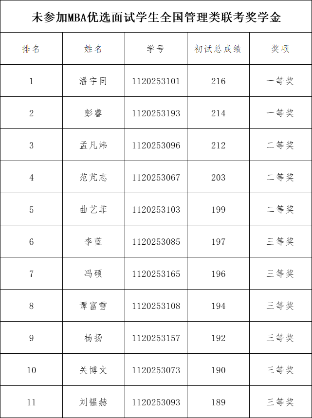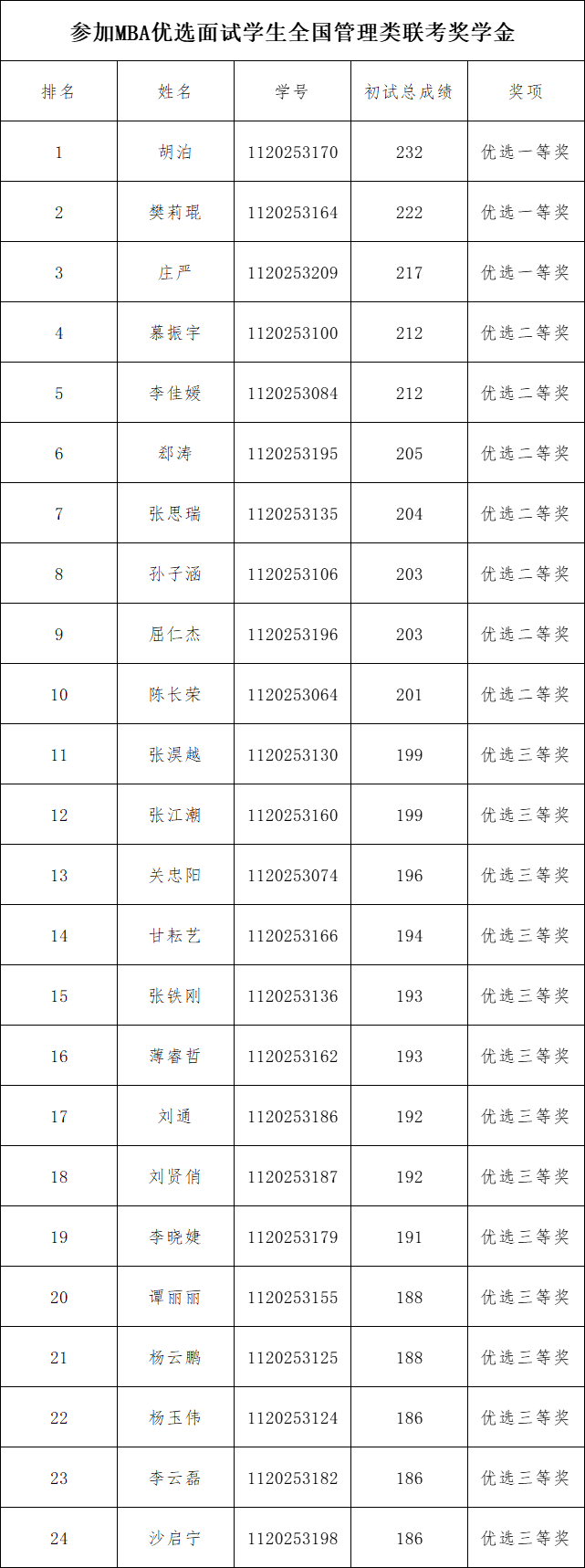 大连海事大学2025级工商管理硕士(MBA)全国管理类联考奖学金名单公示
